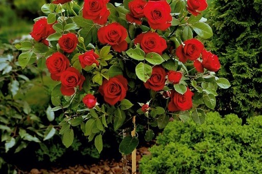 Nagy, sötétpiros virágok. Erős, klasszikus rózsaillat. Díjnyertes, nemzetközileg elismert fajta.