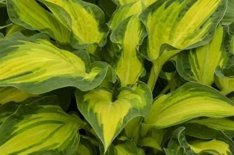 Ovális vagy szív alakú levelekkel rendelkezik, melyek közepén világoszöld, a szélén pedig sötétzöld szín található. A kontrasztos, világos színű levélmintázat, közepes méretű bokrot alkot. Nyáron halvány levendulaszínű virágokat hoz, amelyek június végén és július elején jelennek meg. Félárnyékos helyet kedveli.