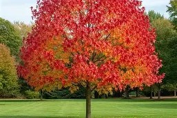 Magassága 15-25 m, koronája szabályos, kúpos, később szélesebb. Levelei csillag alakúak, juharra emlékeztetnek. Őszi lombszíne rendkívül látványos, sárga-narancs-piros- bordó-lilás árnyalatok. Egyik legszebb őszi díszfa. Termése gömb alakú, tüskés. Napfénykedvelő, teljes napfényben a legszebb a színeződése. Közepes-nagy a fényigénye. Kedveli a nyírkos, de jó vízáteresztő, enyhén savanyú talajt. Fagytűrő -20 celsius fokig.