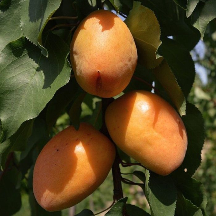 Július 20-a körül érik. Nagy gyümölcse erősen megnyúlt, lapított mandula alakúak, 55-60 gr tömegűek. Húsa világos narancssárga, közepes keménységű, lédús, kellemes ízű. Főleg befőttnek, de nyers fogyasztásra és lekvár készítésre is alkalmas.  Világos narancssárga héja a napos oldalon kismértékben pirossal fedett. Húsa sárga, közepesen kemény, lédús, ízletes.