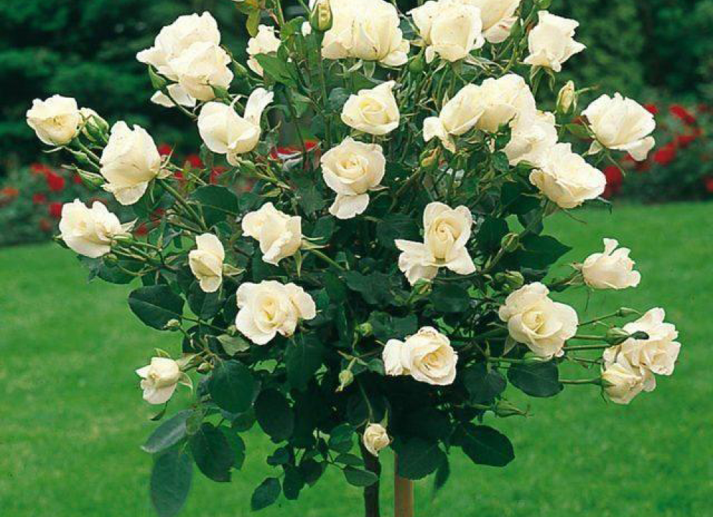 Virágzási időszak május-november, magassága 190cm. Hófehér, telt, kerek virágai romantikus hangulatot árasztanak, miközben erős illatukkal varázsolják el a kertet.