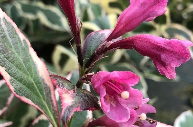 50-70 cm magas, bokros növekedésű lombhullató cserje. Rózsaszín virágaihoz nagyon jól mutatnak fehéres rózsaszínnel tarkázott levelei, melyek ősszel pink és bíbor árnyalatában pompáznak. Gazdagon elágazó, sűrű, bokros habitusú cserje. Laza szerkezetű, jó vízáteresztő képességű, tápanyagban- és humuszban gazdag enyhén savanyú vagy semleges talaj ideális a számára. Nagy fényigényű növény, kisebb árnyékolást elvisel, de ekkor kevesebb virágot nevel. Rendszeres, bőséges öntözést igényel!